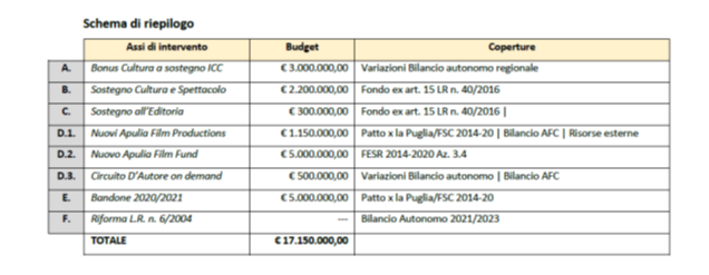 D.2. sostegno alla produzione cinematografica: lancio del nuovo Apulia Film Fund 2020/2021 avente ad oggetto esclusivamente lungometraggi, fiction e doc