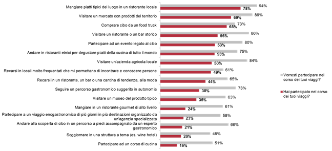 Grafico 1: esperienze enogastronomiche fruite e desiderate